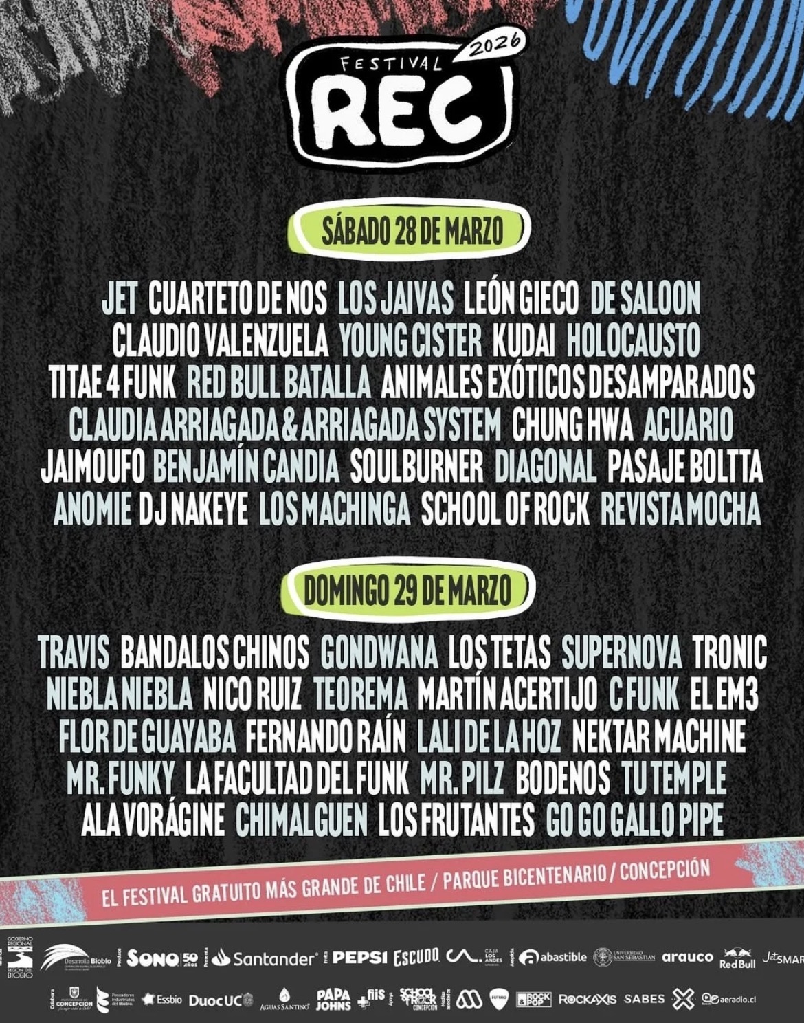 La organización del Festival REC 2026 dio a conocer la esperada programación por día, permitiendo a los miles de asistentes planificar su paso por el Parque Bicentenario de Concepción. La gran sorpresa de este anuncio fue la incorporación de Young Cister, uno de los máximos exponentes del género urbano nacional, quien llega para fortalecer una convocatoria que apuesta por la diversidad de estilos. Sin embargo, la noticia también trajo consigo la confirmación de que el dúo Katteyes no formará parte del evento, una modificación que ya ha generado diversas reacciones entre los seguidores del certamen penquista.